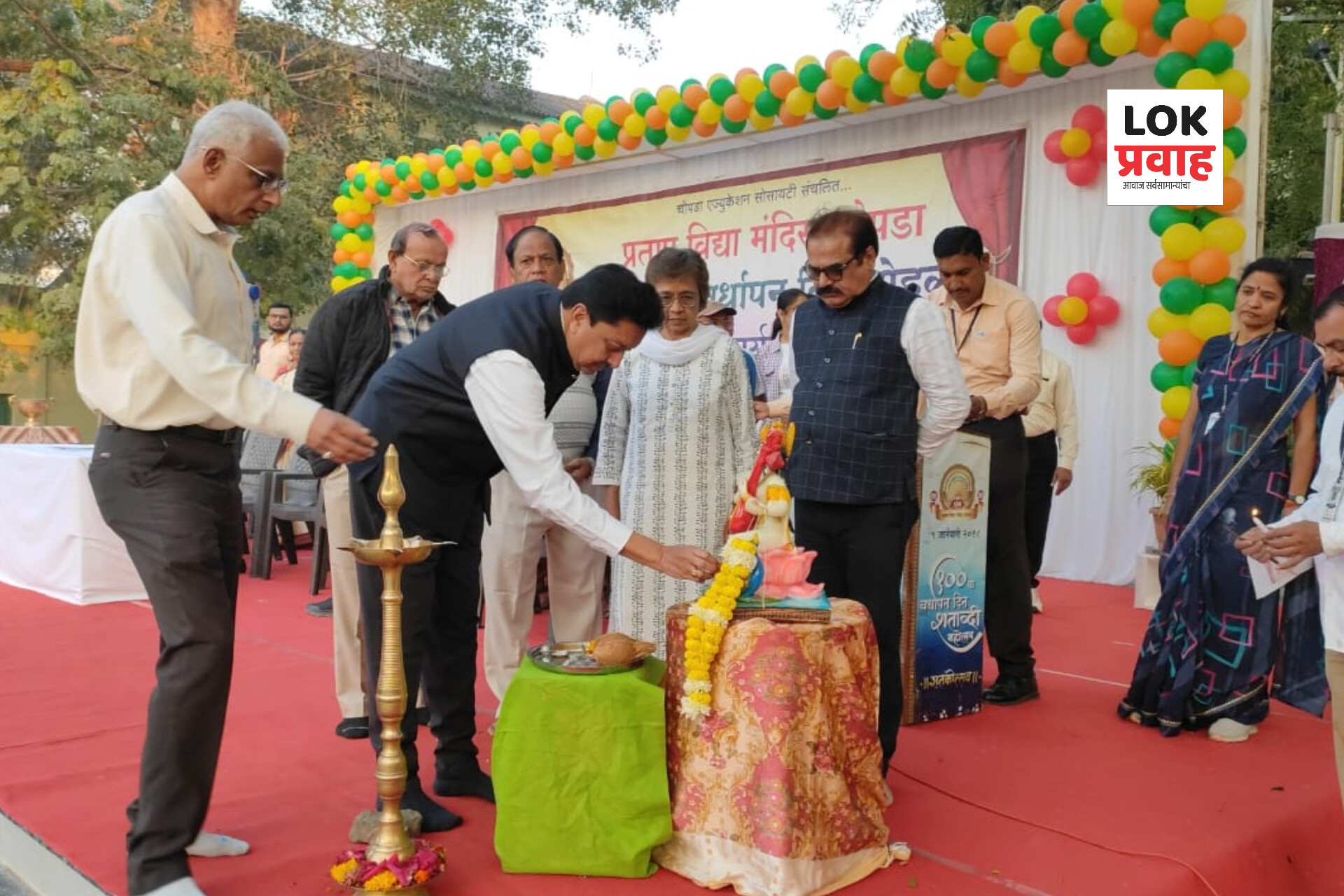 टिम लोकप्रवाह, चोपडा दि. 06 : येथील चोपडा एज्युकेशन सोसायटी संचलित प्रताप विद्या मंदिराच्या शतकोत्तर सातव्या वर्धापन दिनाच्या कार्यक्रमांचे दिमाखदार उद्घाटन आज दि. 6 जानेवारी 2025 रोजी संपन्न झाले. यावेळी संस्थेचे उपाध्यक्ष विश्वनाथजी अग्रवाल यांच्या शुभहस्ते संस्थेचे ध्वजारोहण आणि एन सी सी च्या ९० कॅडेट यांनी रोहन पाटील, श्रीमती जे आर बडगुजर यांच्या मार्गदर्शनाखाली शिवकुमार मधुकर मगरे या विद्यार्थ्याच्या हस्ते ज्योत प्रज्वलन करून संपन्न झाले. संस्थेच्या परंपरेप्रमाणे सेवानिवृत्त शिक्षकांप्रती कृतज्ञता व्यक्त करण्यासाठी त्यांचा देखील सत्कार संस्थेच्या वतीने करण्यात आला. यात एम आर पाटील, एम बी चौधरी, ए जी कुलकर्णी, पी पी पाटील, सुनील गुजराथी तसेच शिपाई अमृत पारधी यांचा सहपत्नीक तर दिवंगत तामराज सोनवणे व राजू पाटील यांच्या वारसांचा मान्यवरांच्या हस्ते सत्कार करण्यात आला.