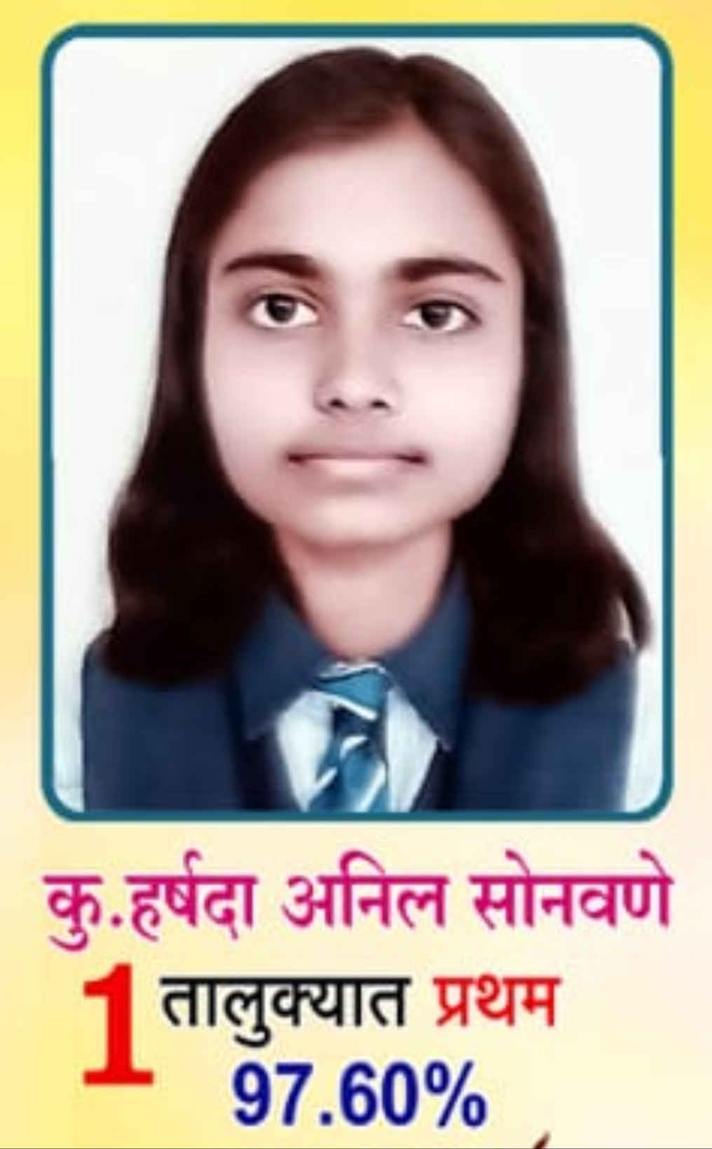 हर्षदा अनिल सोनवणे ही विद्यार्थिनी ९७.६० टक्के गुण मिळवत विद्यालयात व तालुक्यात प्रथम आली.तर प्रांजल खंडेराव पाटील (९७.००%), चिरायू नितीन पाटील (९६.२०%), तेजस्विनी सुरेश सोनवणे (९४.८०%), प्रणव जितेंद्र चव्हाण (९२.२०%), वेदिका विजय सोनवणे (९२.२०%), क्रिष्णा तुकाराम पाटील (९१.६०), समृद्धी किरण पाटील (९१.००%) यांनी अनुक्रमे पहिले आठ क्रमांक पटकावले आहेत. तर १३ विद्यार्थ्यांना ८० टक्के पेक्षा अधिक मार्क मिळाले आहेत.