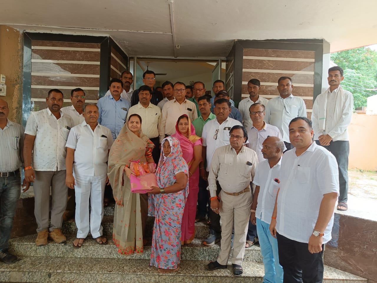 यावेळी १३ तास व ७० किलोमीटर तापी नदीत पोहत आपला जीव वाचविणाऱ्या कोळंबा येथील लता कोळी यांचा आमदार लता सोनवणे यांच्याकडून साडी चोळी देऊन सत्कार करण्यात आला. व त्यांनी दाखविलेल्या धैर्याचे यावेळी कौतुक करण्यात आले.